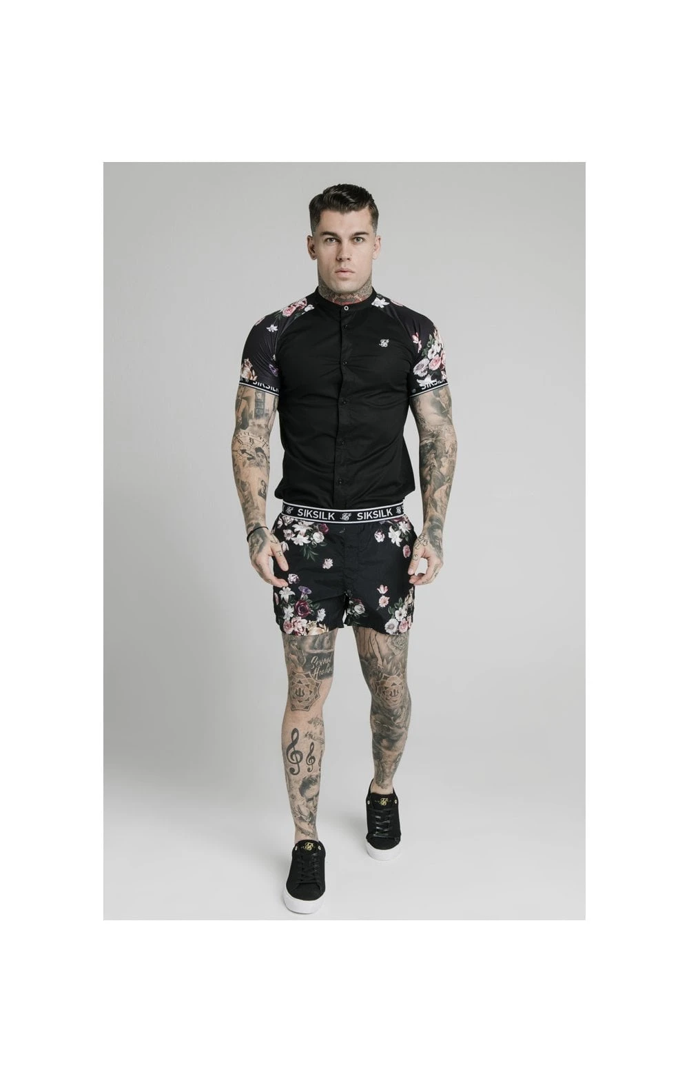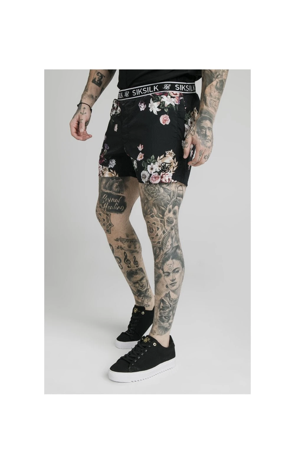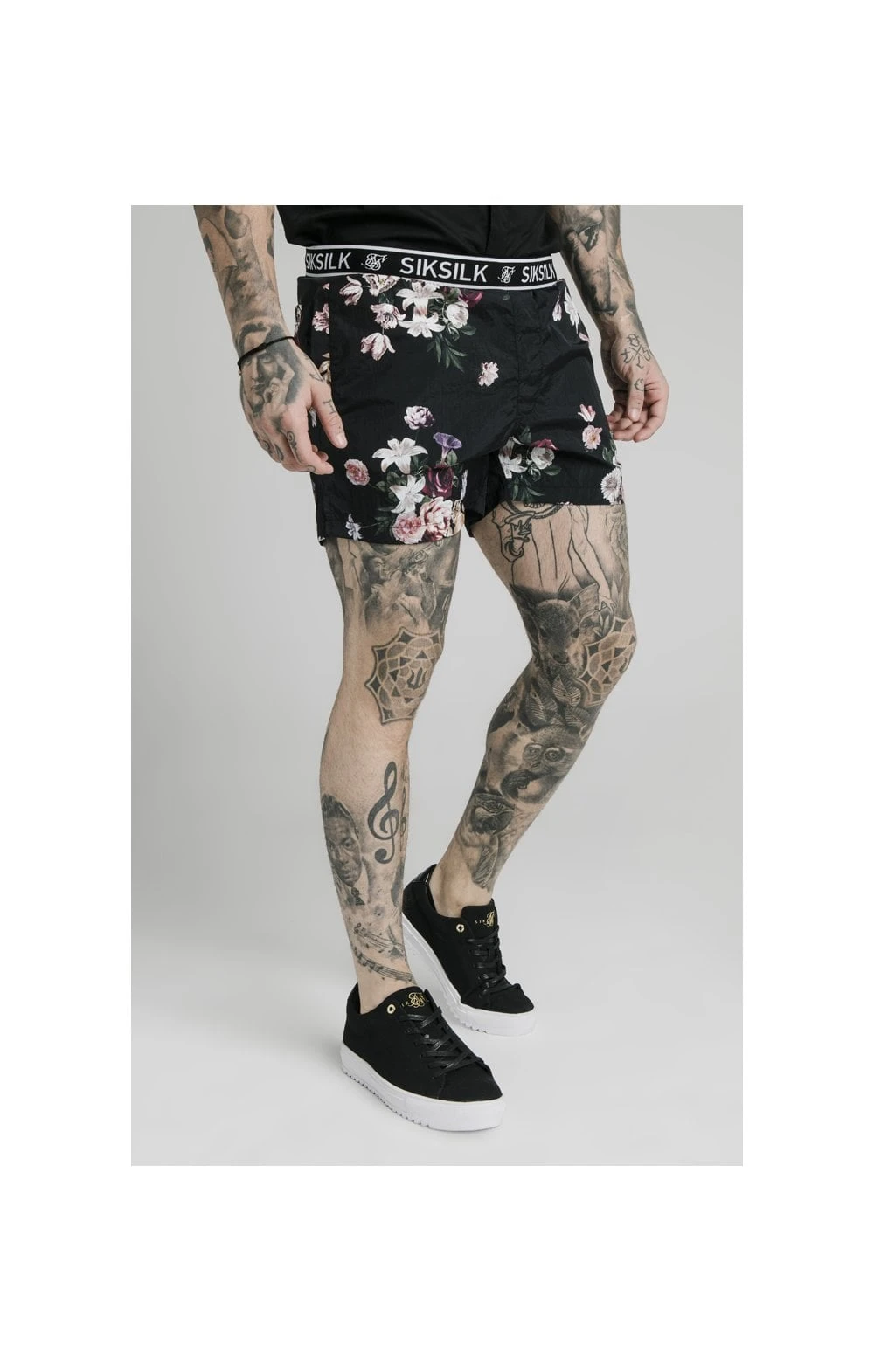 BlackFloral Swim Short