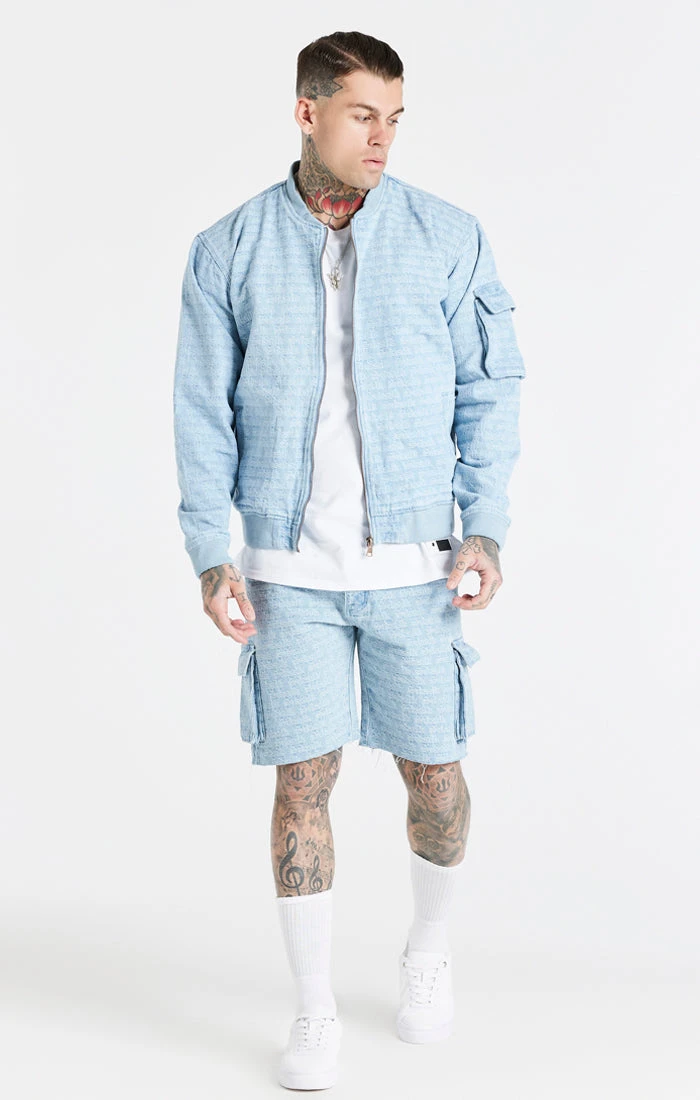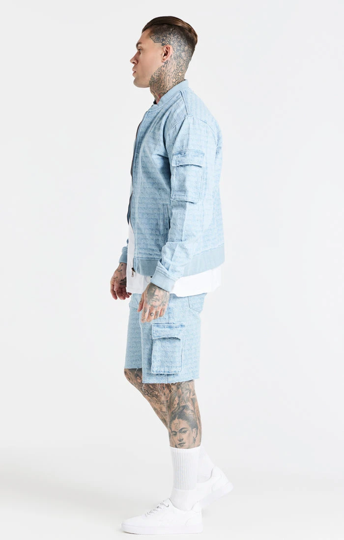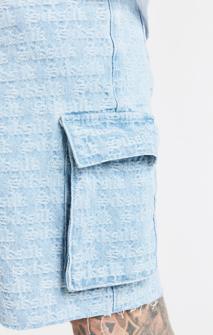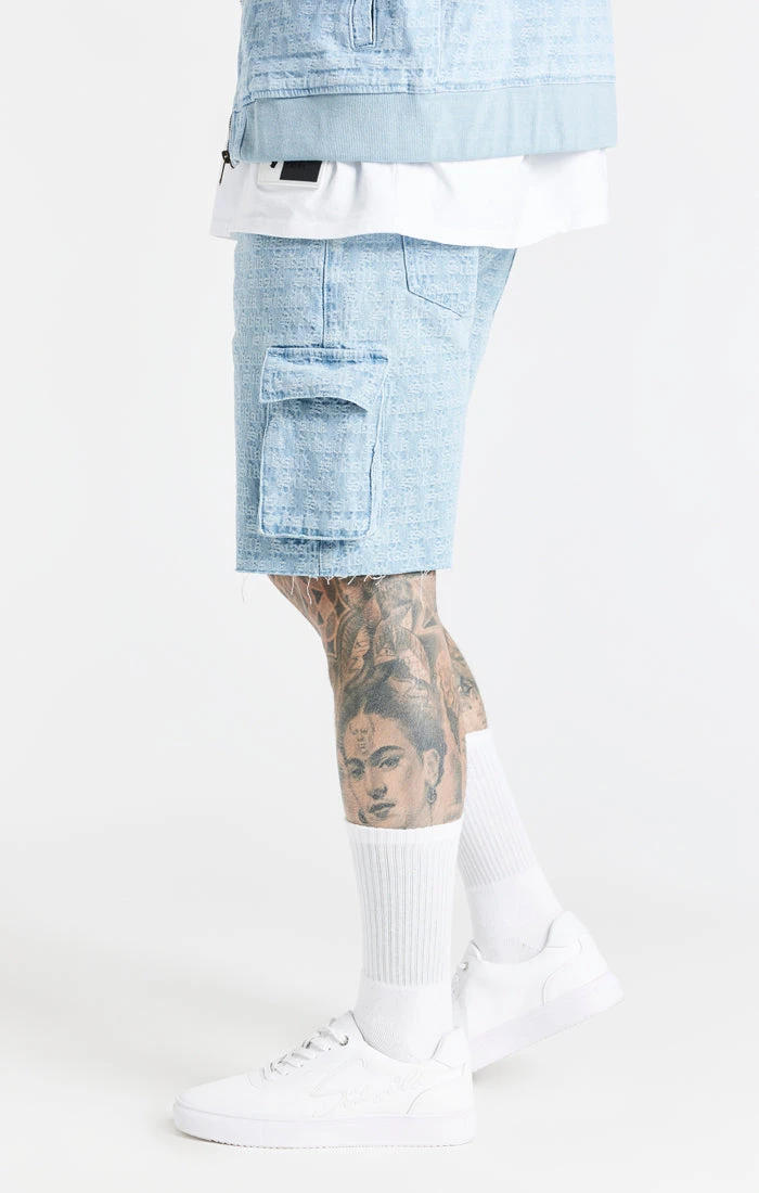 Blue Jacquard Denim Cargo Short