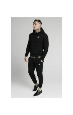 SikSilk Elastic Jacquard Overhead Hoodie – Black