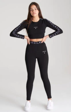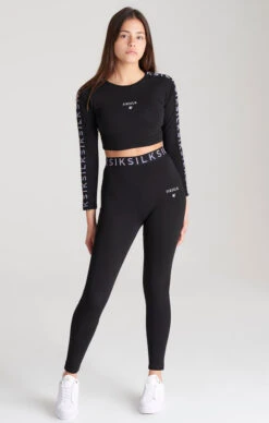 Girls Black Taped Long Sleeve Cropped T-Shirt