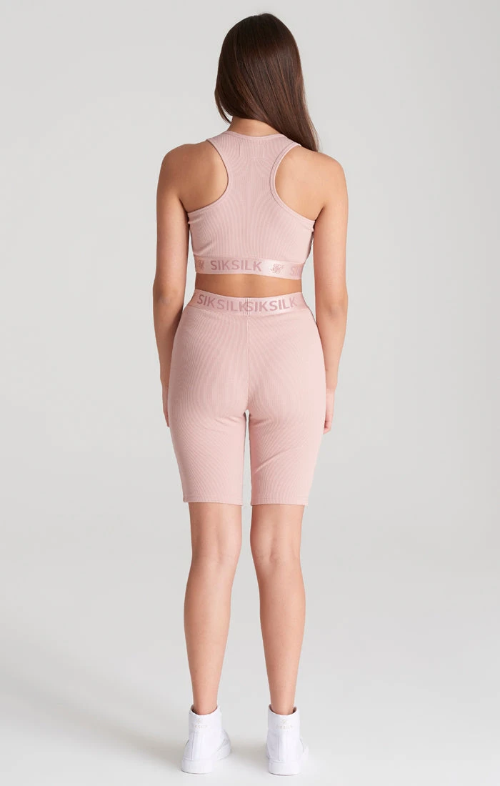 Girls Pink Ribbed Taped Cycle Short