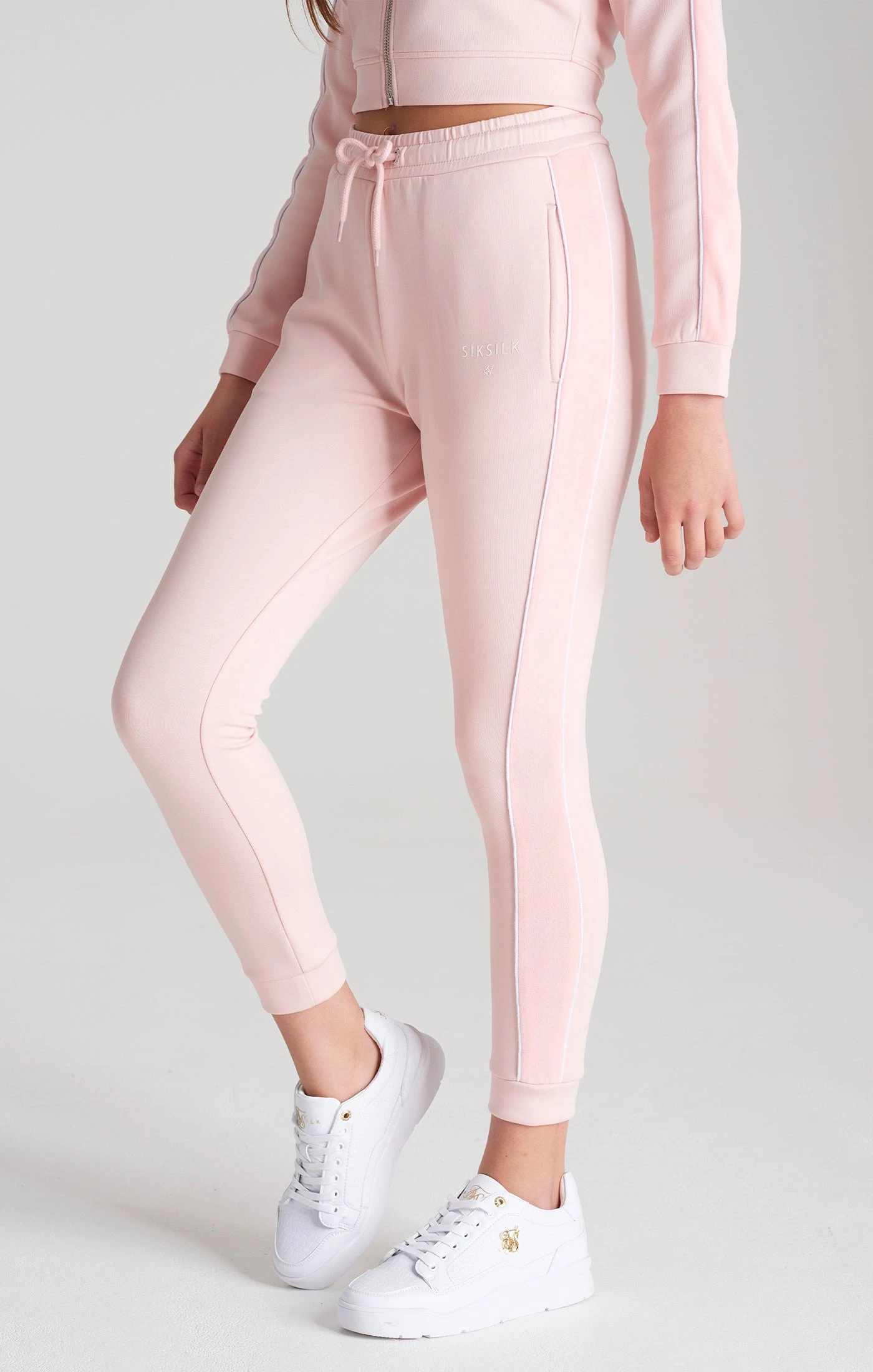 Girls Pink Velour Taped Track Pant