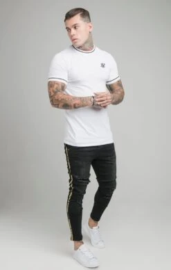SikSilk Imperial Retro Rib Gym Tee – White & Black