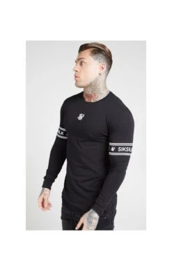 SikSilk L/S Branded Gym Tee – Black