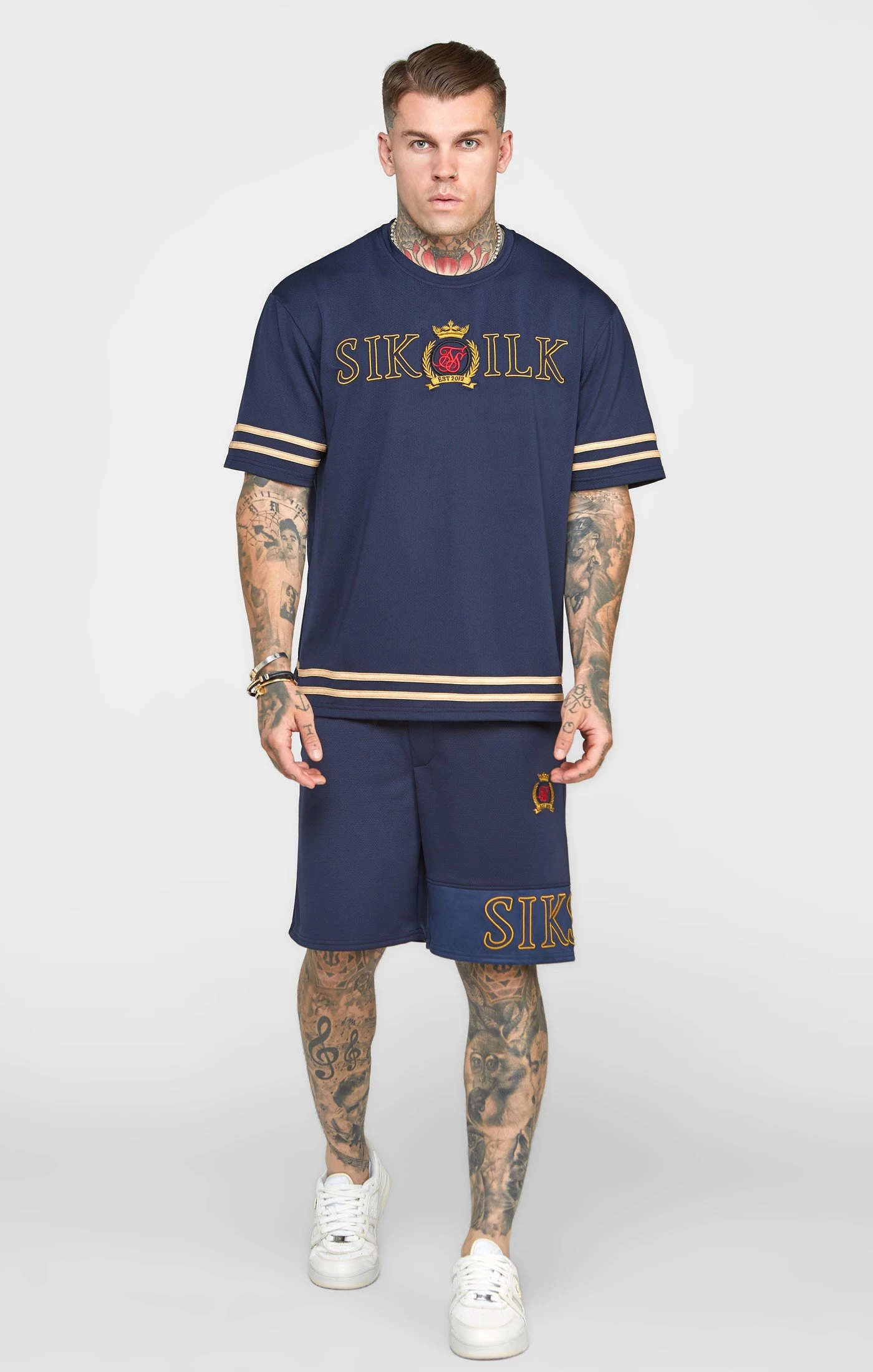 Navy Embroidery Relaxed Short