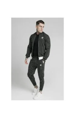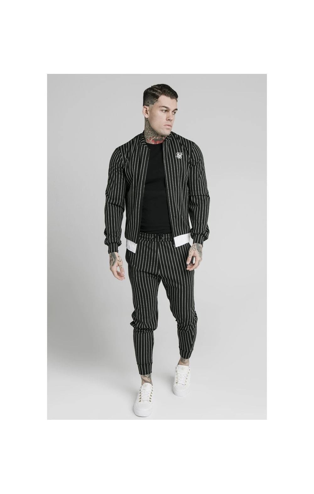 SikSilk Pinstripe Bomber Jacket – Black & White