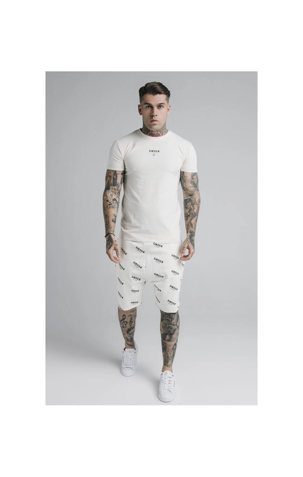 SikSilk Repeat Print Shorts – Off White