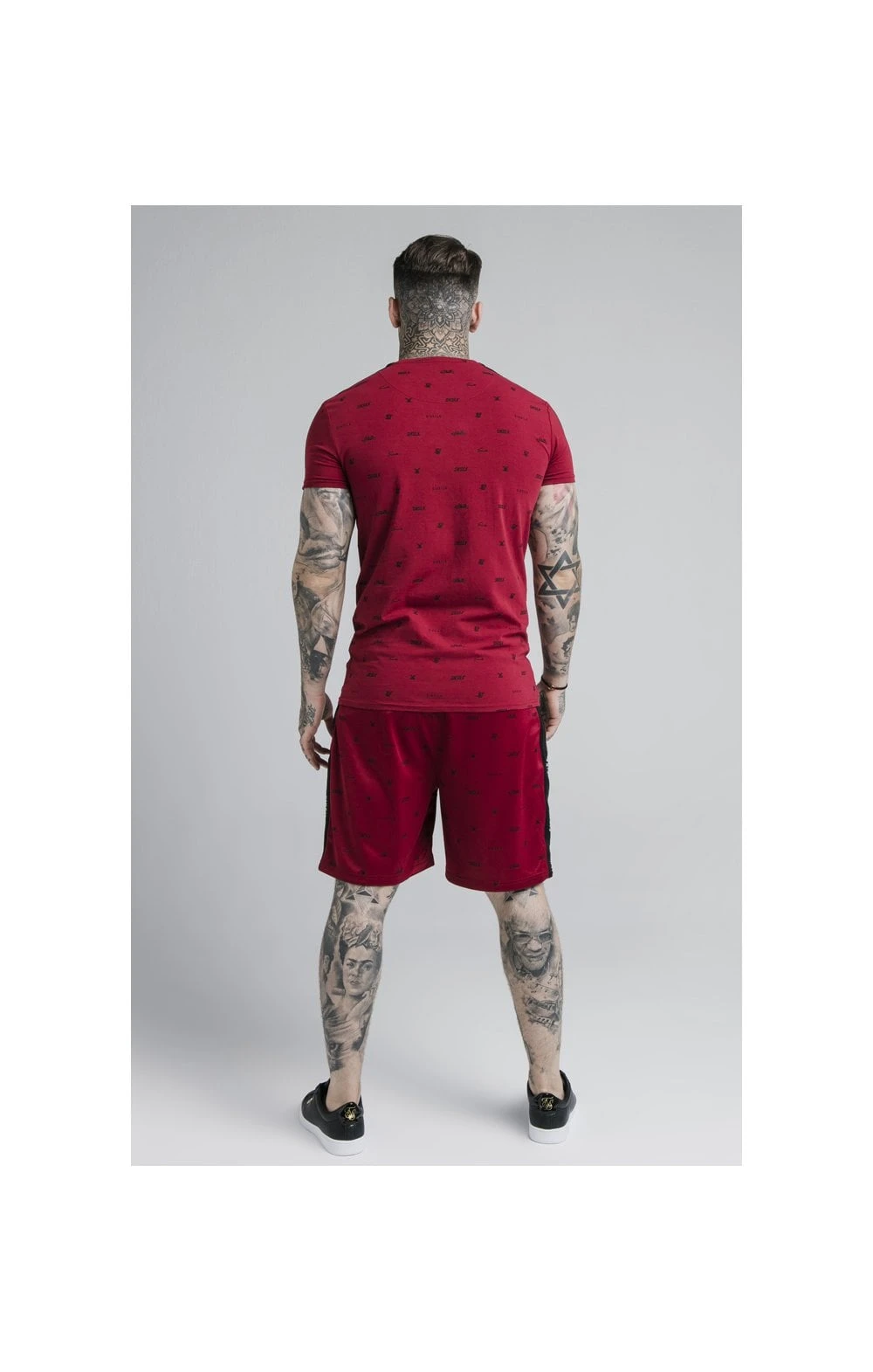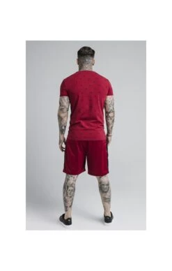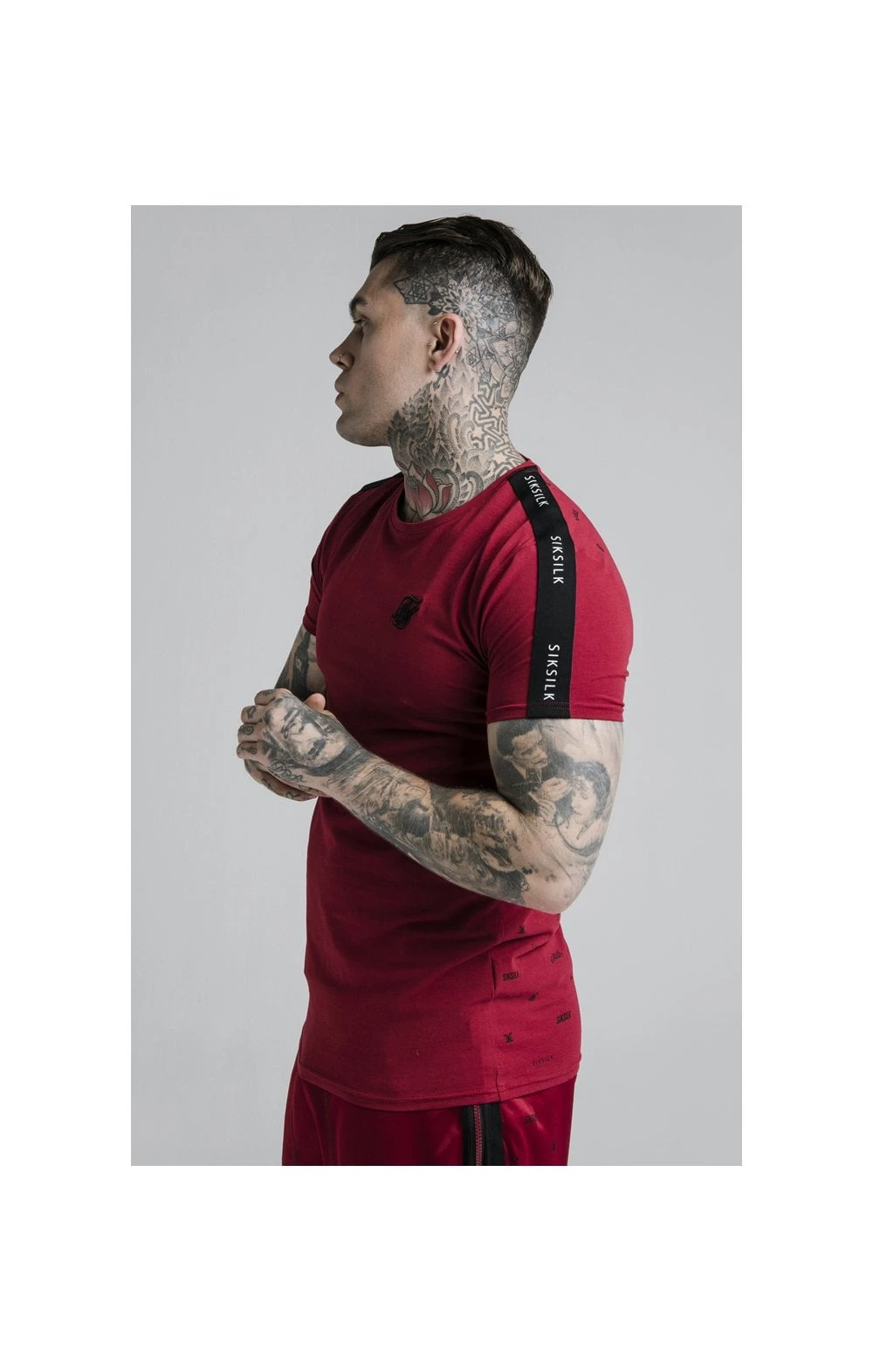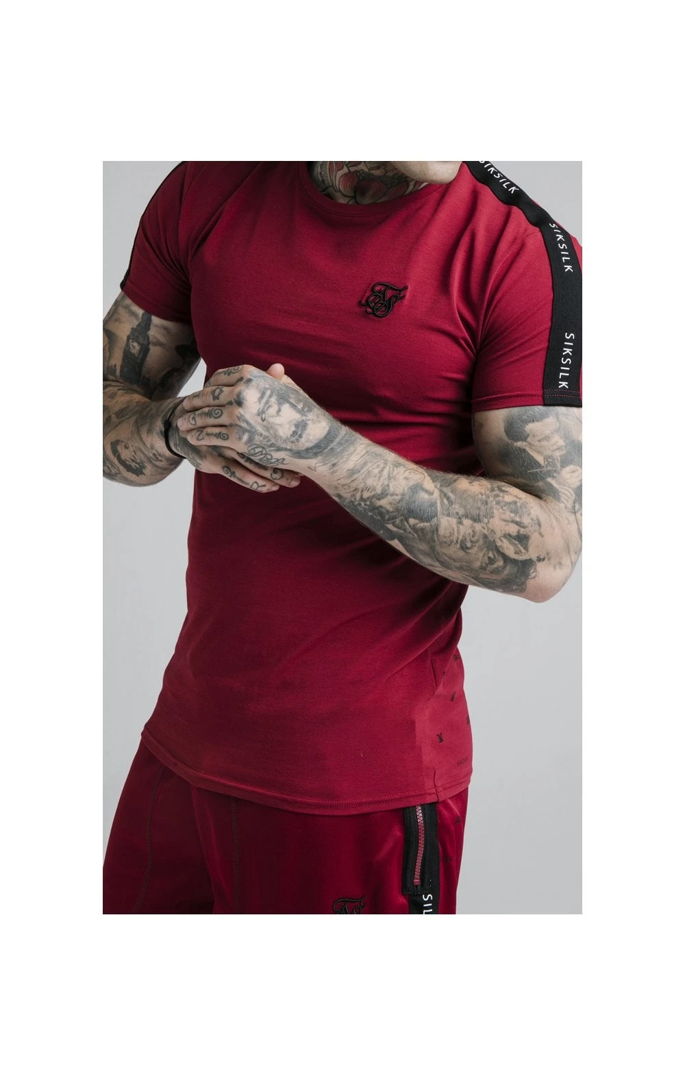 SikSilk Shadow Straight Hem Gym Tee – Deep Red & Black