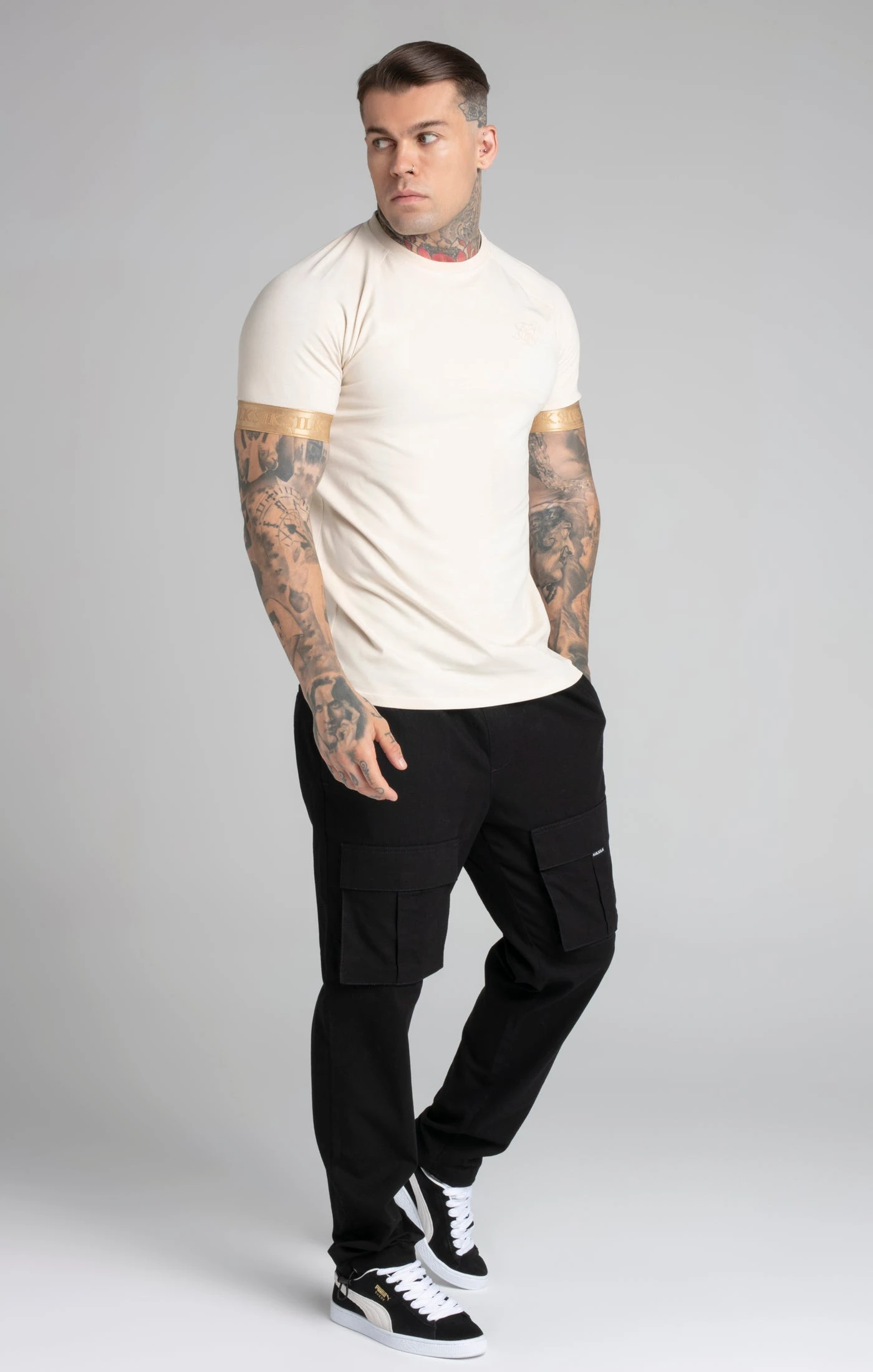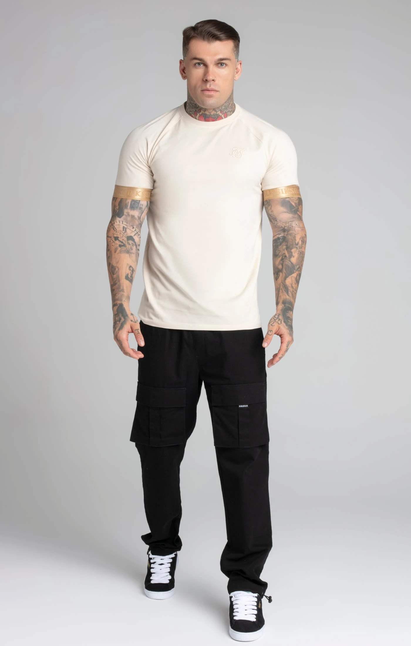 - Logo tape cuffs